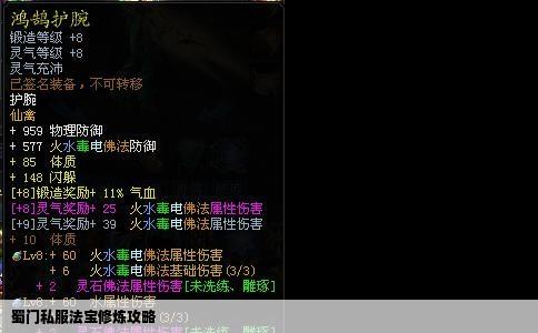 通过以上方法,玩家可以在蜀门私服中有效地修炼法宝,提升角色战斗力。在游戏中不断探索和尝试,你会发现更多有趣的玩法和技巧。祝你在蜀门私服的游戏旅程中取得好成绩!